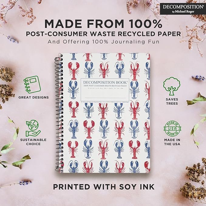 Decomposition Lobsters College Ruled Spiral Notebooks – 9.75 x 7.5 Journal with 160 Lined Pages – Notebooks for School Supplies, Home & Office – 100% Recycled Paper – Made in USA