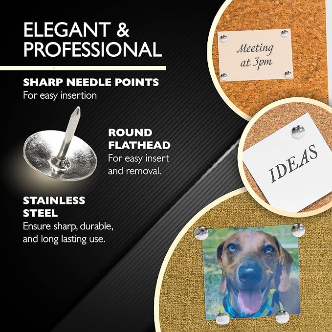 - ⭐ PERFECT DEAL. Metallic pins are perfect addition to your thumbtack office accessories. Available in bulk school and office supplies, retail and wholesale to save your costs.