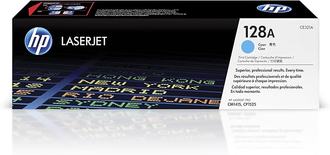 - What's in the box: 1 new Original HP 128A Cyan Toner Cartridge (CE321A)