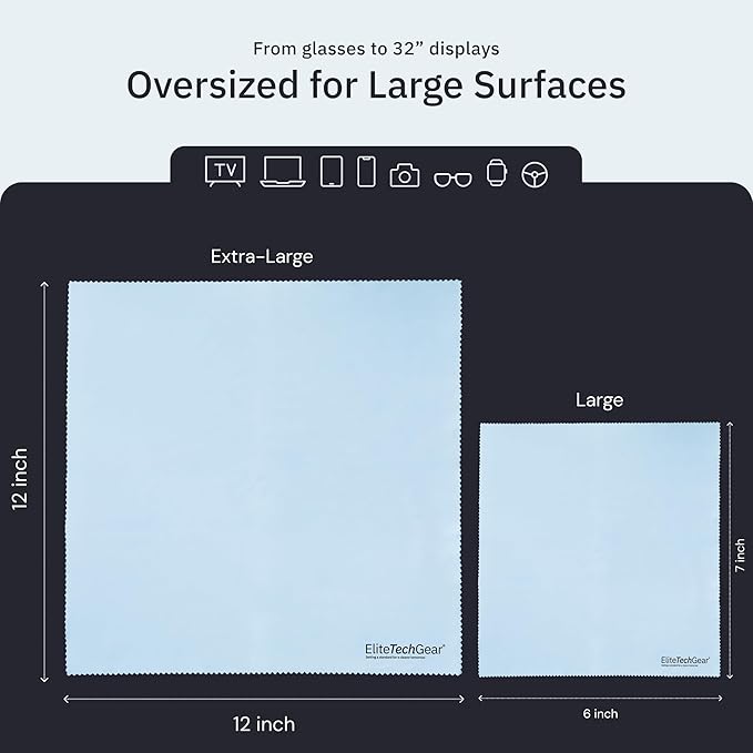 Elite Tech Gear Microfiber Cleaning Cloth 12-Pack - 12"x12" Oversized, Washable & Durable for Glasses, Lenses, Electronics & Screens - High Tech Quality Material