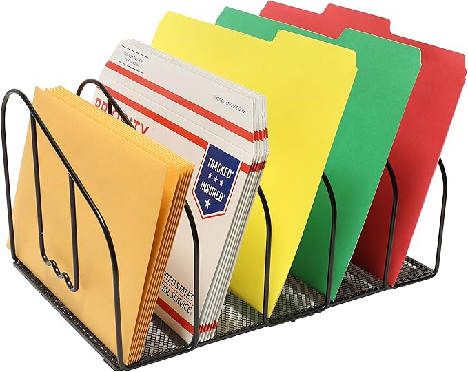 Deco Brothers File Sorter Organizer for Desk, 5 Sections, Black