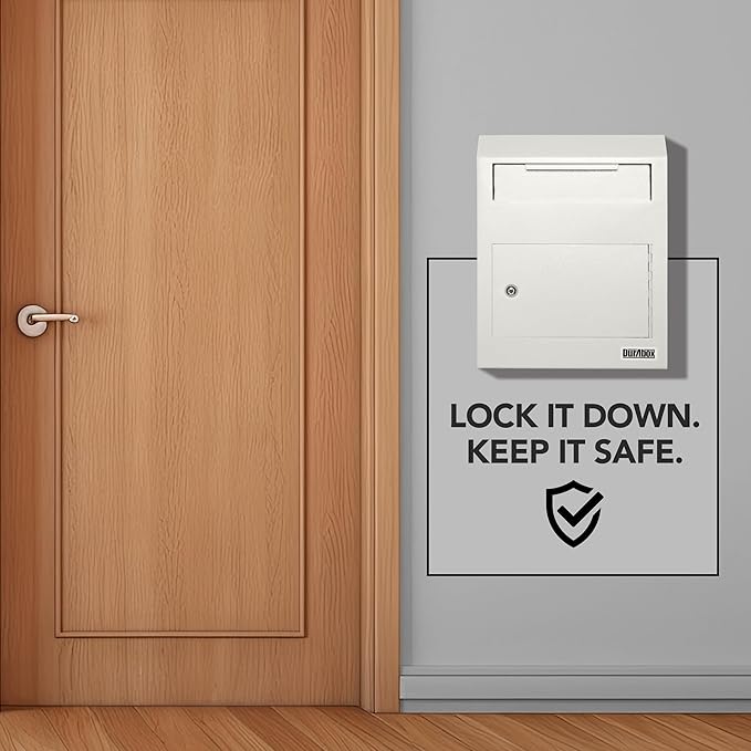 - HEAVY DUTY – Crafted from robust 14-gauge cold-rolled steel, the Durabox Locking Mailbox is built to last. Its weather-resistant powder-coated finish protects against rust, scratches, and corrosion, ensuring the wall lock box has reliable performance both indoors and outdoors.