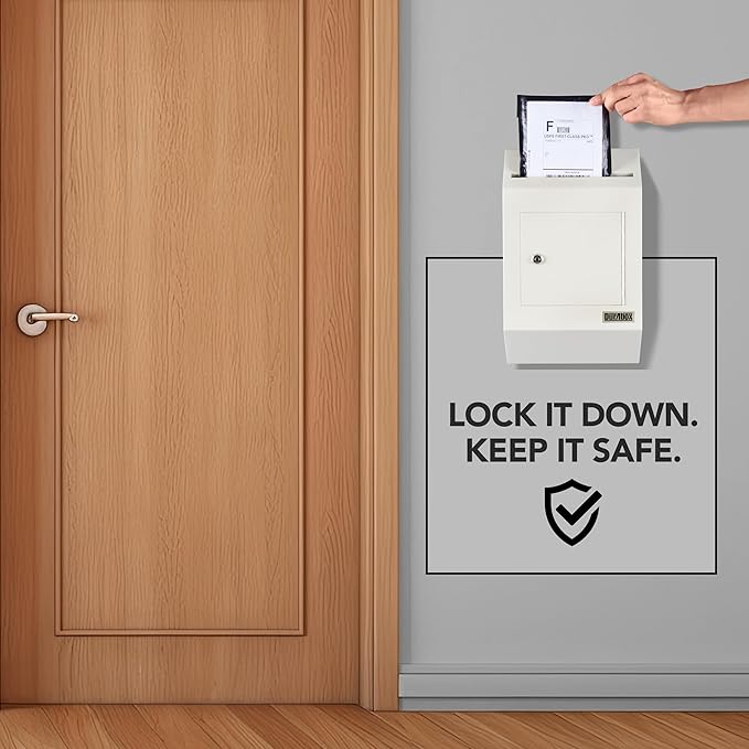 - SECURE – Designed with security in mind, this wall-mounted drop box features a reinforced double steel door, a durable piano hinge, and two internal metal baffles to prevent tampering, prying, or fishing. The tubular lock and key system offers additional protection against unauthorized access.