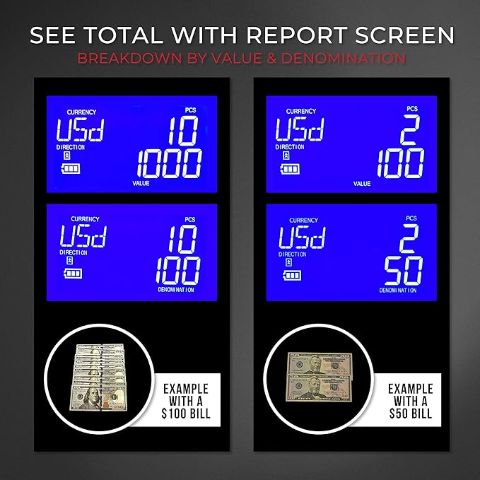 - Easy-to-read digital display clearly reports pass or fail for checked bills along with their denomination