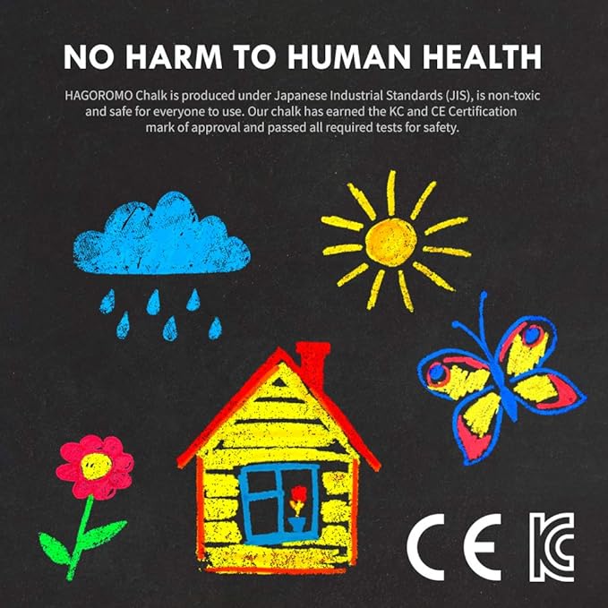 - WELL COATED AND DUST FREE: The only thing worse than chalk breaking in half is getting dust all over your hands and clothes when writing on the board or drawing on the sidewalk. All Hagoromo chalks are well coated to prevent hands from coming into contact with chalk dust when using.