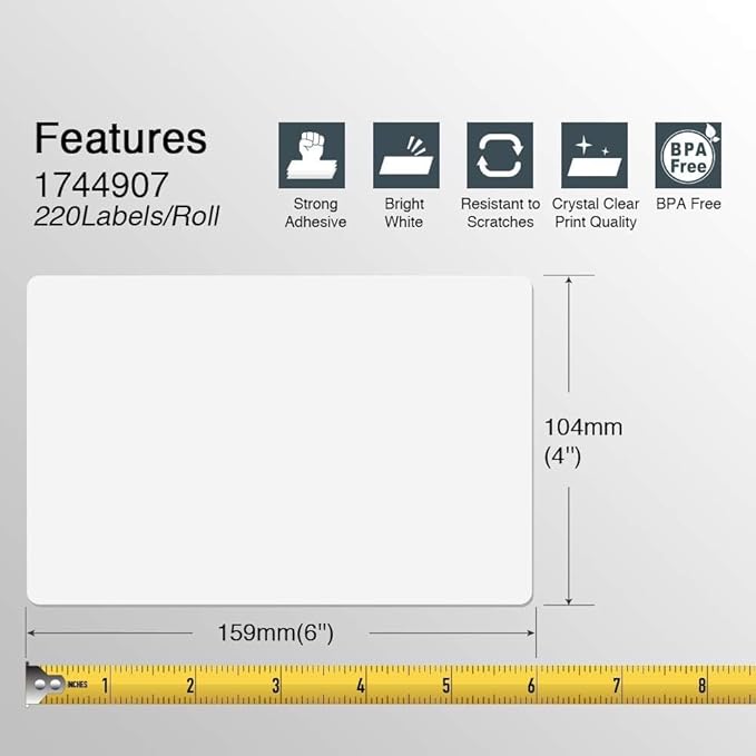 - [ 4x6 Shipping Labels ]: 4 in x 6 in (104mm x 159mm) labels replace for DYMO LW 1744907 S0904980 1755120 1951462 are mainly used as shipping labels. Print shipping labels and internet postage labels for transportation platform and e-commerce platform.Such as FedEx,USPS,UPS,Shopify,Etsy,Amazon,eBay,PayPal,Poshmark,Depop,Mercari et.