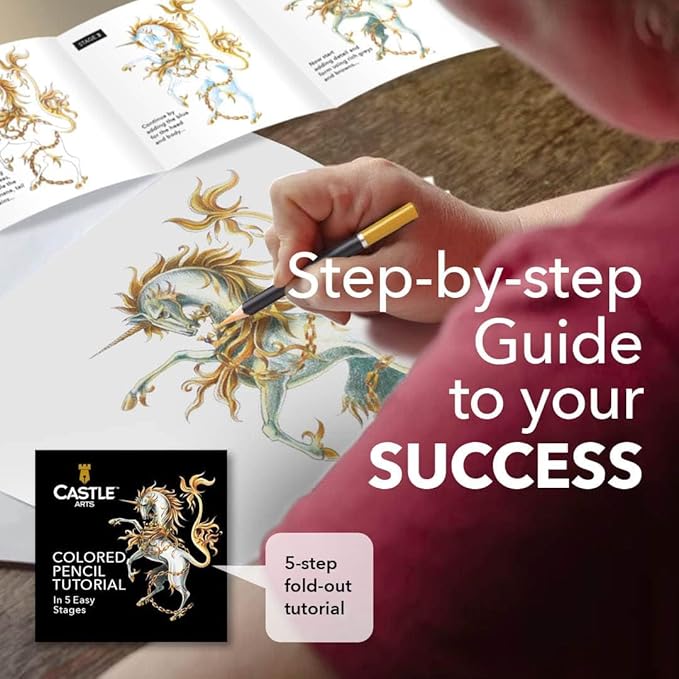 - BUILD YOUR SKILLS Unique fold-out tutorial enables you refine your colored pencil skills by re-creating the stunning unicorn illustration on the sleeve cover.