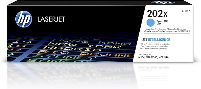 HP 202X Cyan High-yield Toner Cartridge | Works with HP Color LaserJet Pro M254, HP Color LaserJet Pro MFP M281 Series | CF501X