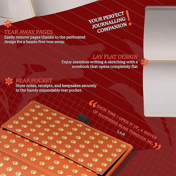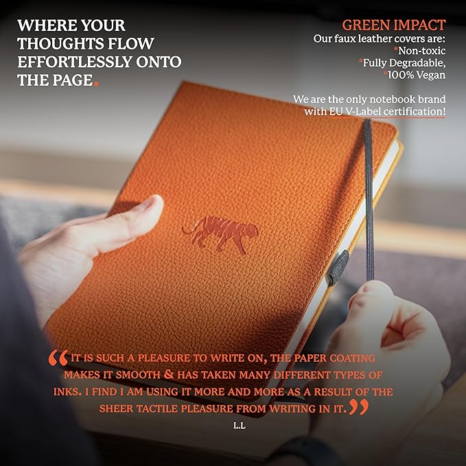 - A5 NOTEBOOK WITH LOTS O' FEATURES: Dingbats notebooks ooze quality - this hardcover bound leather notebook is crafted with PU vegan leather, micro-perforated Cream 100gsm pages, an elastic closure and pen holder. It's complete with animal footprint end sheets, and an inner pocket for a little added detail - the perfect gifts for loved ones, these travel essentials are a gift that keep on giving