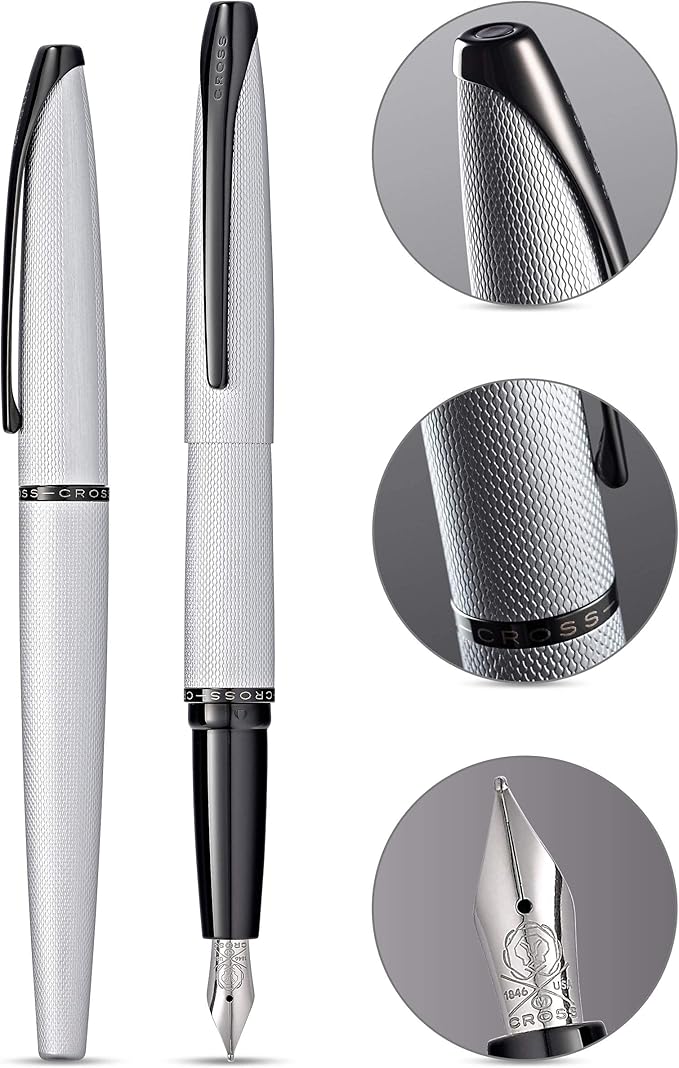 Cross ATX Refillable Fountain Presented in a Luxury Gift Box - Medium Point, Black Ink, Sandblasted Chrome