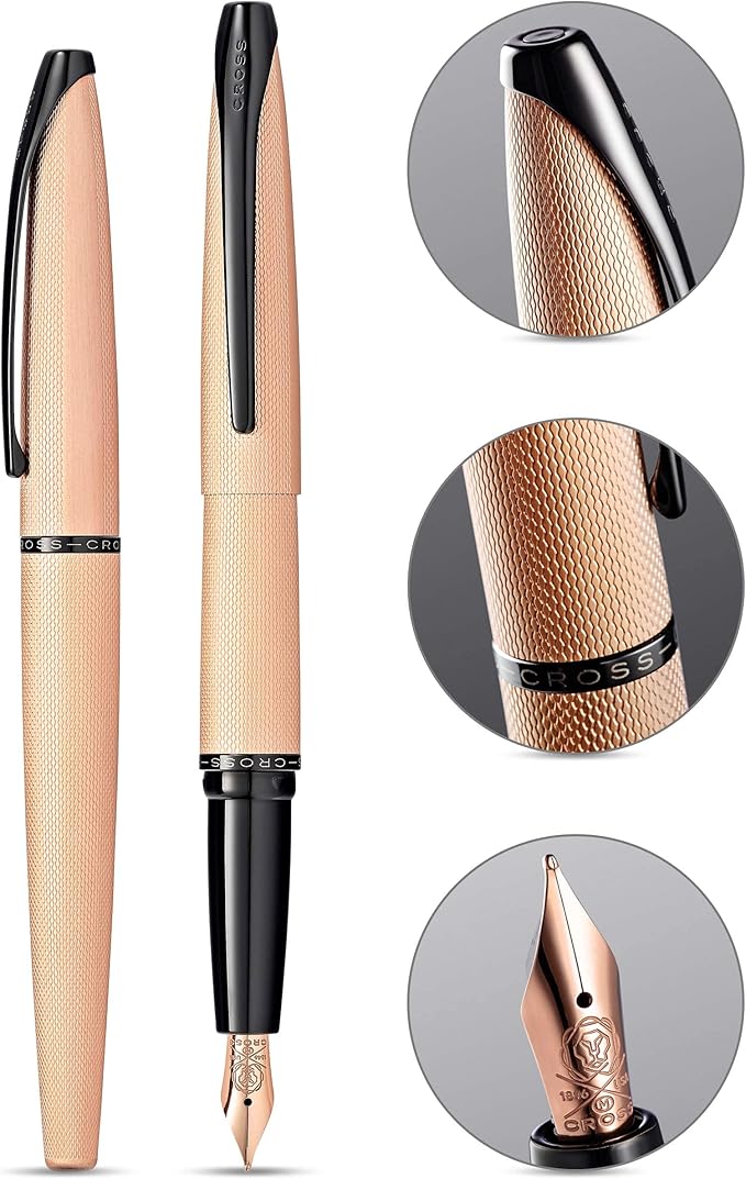 Cross ATX Refillable Fountain Presented in a Luxury Gift Box - Medium Point, Black Ink, Sandblasted Rose Gold