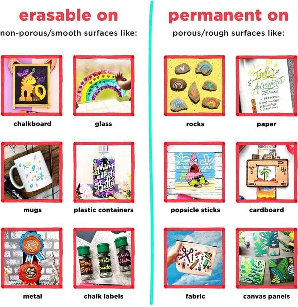 - Comes Off Easy - The white chalk marker will work on almost any surface! These chalk board markers are washable & will erase off on non-porous surfaces such as glass & mirrors (dry & wet erase) & permanent on porous surfaces (like wood).