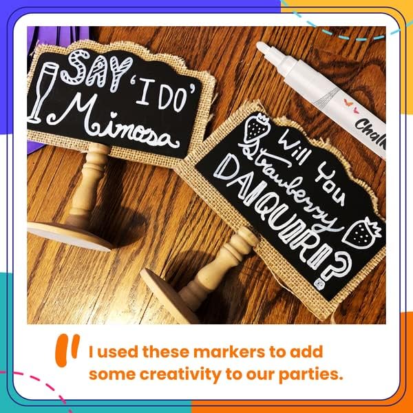 - Can Be Used On Many Surfaces - These perfect erasable chalk markers for blackboard can be used to write on wedding signs, shop storefront, milestone boards, menus, LED board, contact paper, mirror, car window markers, bistro chalk marker