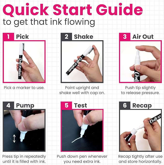 - Long Lasting - While other white dry erase markers crack under heavy use, our richly pigmented liquid chalk markers pen set stays fray free.