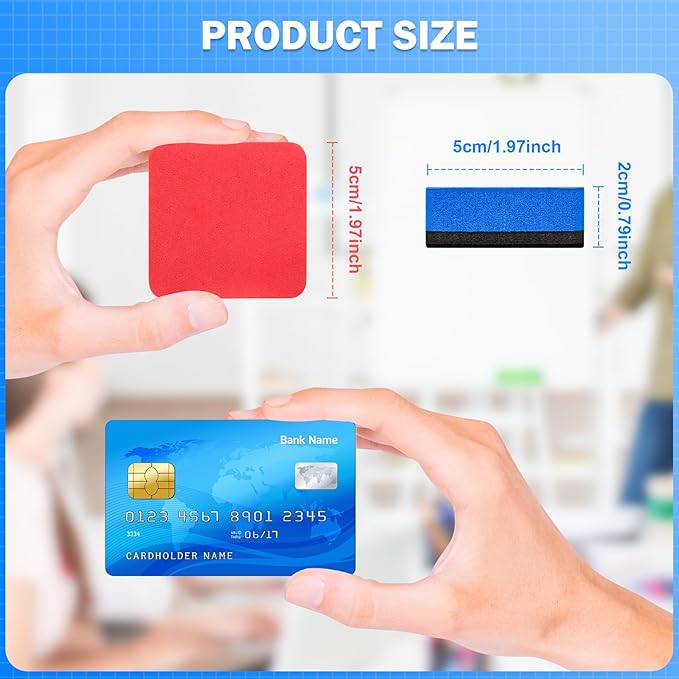 - DURABLE AND WASHABLE: Our dry erasers are made of premium quality EVA foam and high-density felt bottom, non-toxic, and easy to clean the erase markers on glass or white board. And the felt side of the eraser is magnetic and can be absorbed to the whiteboard. The erasers are hand-washable with water and soap for reuse
