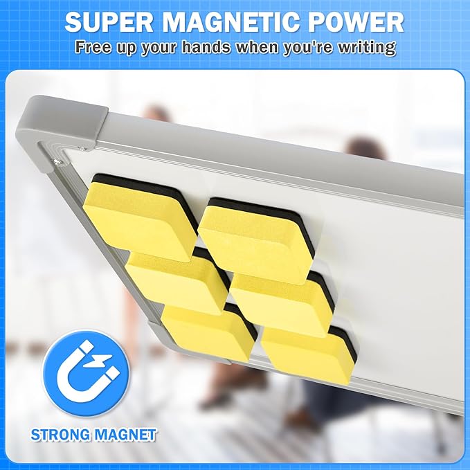 - MULTIFUNCTION: With strong absorb-ability, these erasers are good assistants for school, home, and office, because they are not just erasers, but also can be used as magnets on a whiteboard or any other magnetic surface. Great board cleanser for managers, teachers, students, and kids