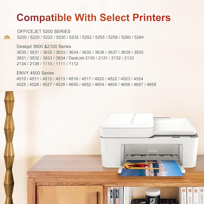 - Compatible Devices : For Deskjet 3600 Series: 3630, 3631, 3632, 3633, 3634, 3635, 3636, 3637, 3639, 3830, 3831, 3832, 3833, 3834, DeskJet 1110, 1111, 1112; OfficeJet 5200 Series: 5200, 5255, 5258, 4650, 4652, 4654, 4655, 4656, 4657, 4658; ENVY 4500 Series: 4510, 4511, 4512, 4513, 4516, 4517, 4520, 4522, 4523, 4524, 4525, 4526, 4527, 4528; Deskjet 2100 Series: 2130, 2131, 2132, 2133, 2134, 2136 For Deskjet 3600 Series: 3630, 3631, 3632, 3633, 3634, 3635, 3636, 3637, 3639, 3830, 3831, 3832, 3833, 3834, DeskJet 1110, 1111, 1112; OfficeJet 5200 Series: 5200, 5255, 5258, 4650, 4652,… See more