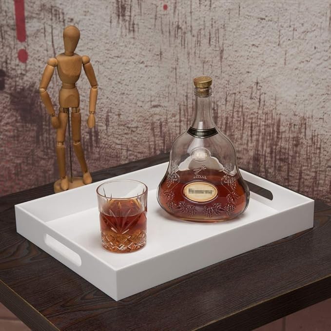 Glossy White Acrylic Serving Tray, 12x16Inch, Sturdy Kitchen Countertop Organizer, Decorative Vanity Table Tray, Ottoman Tray, 3/16 inch Thickness
