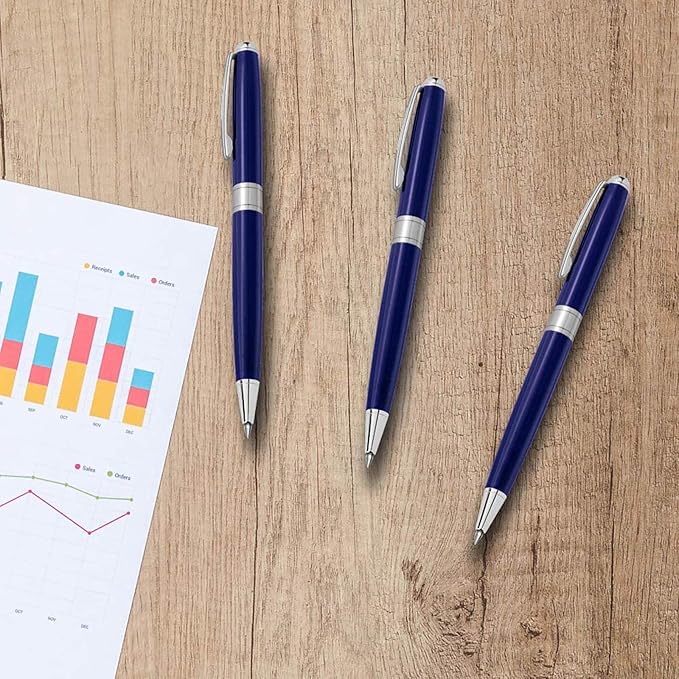 - Premium Black Ink Pens: Elevate your style with the blue pens featuring a sleek metal body in a stunning gold finish; Perfect for men, women, flight attendants, police officers as uniform pen, or wedding guest books as guest pen; Measures 5.47" long with 0.39" diameter for a professional look