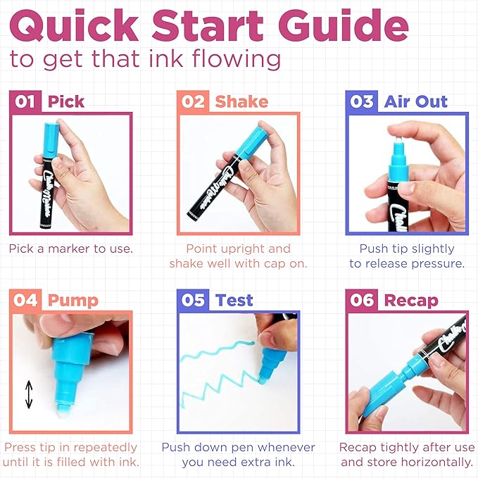 - Mess-Free Skinny Chalk Markers - These liquid chalk markers are washable, dustless, non-toxic and safe for use at home