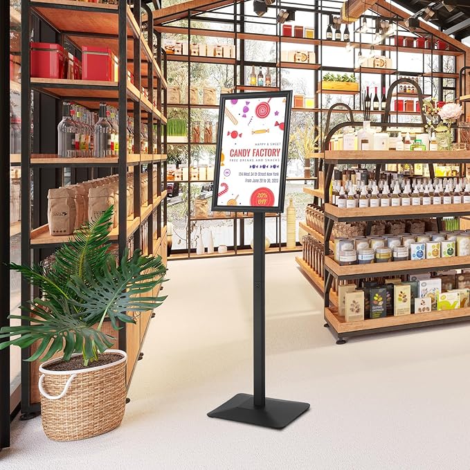 - Easy Poster Changes,Multiple Usage - Front load open snap frame for quick and easy poster changes.Sturdy metal material floor standing sign holder,ideal for exhibition,showrooms, restaurant, supermarket, shopping malls for posters.