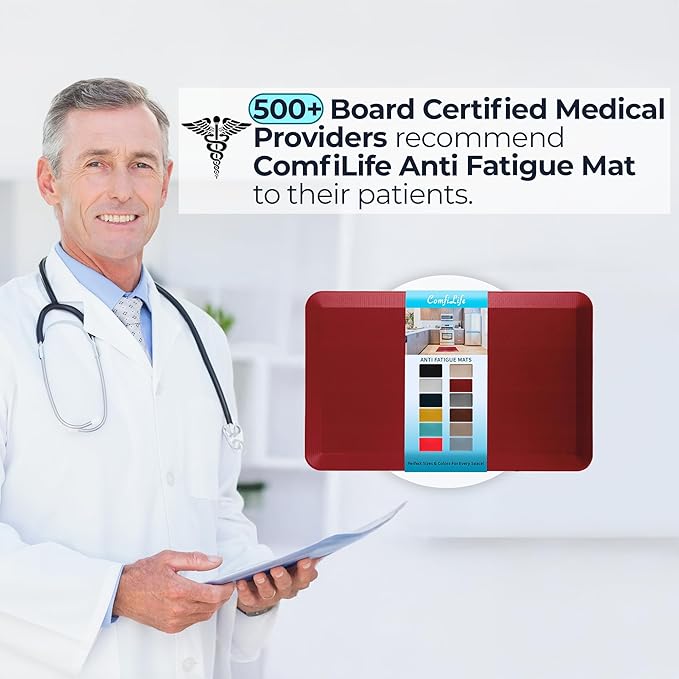 ComfiLife Anti Fatigue Floor Mat – 3/4 Inch Thick Kitchen Mats for Floor, Standing Desk Mat, Kitchen Rug – Comfort at Home, Office – Durable – Stain Resistant – Non-Slip Bottom (24" x 70", Red)