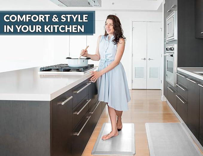 ComfiLife Anti Fatigue Floor Mat – 3/4 Inch Thick Kitchen Mats for Floor, Standing Desk Mat, Kitchen Rug – Comfort at Home, Office – Durable – Stain Resistant – Non-Slip Bottom (20" x 32", Silver)