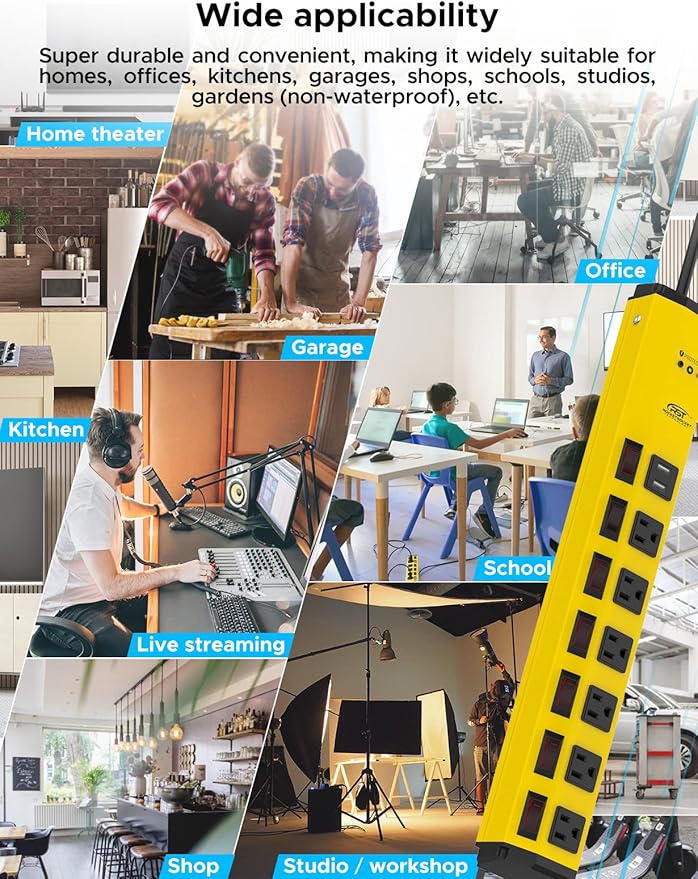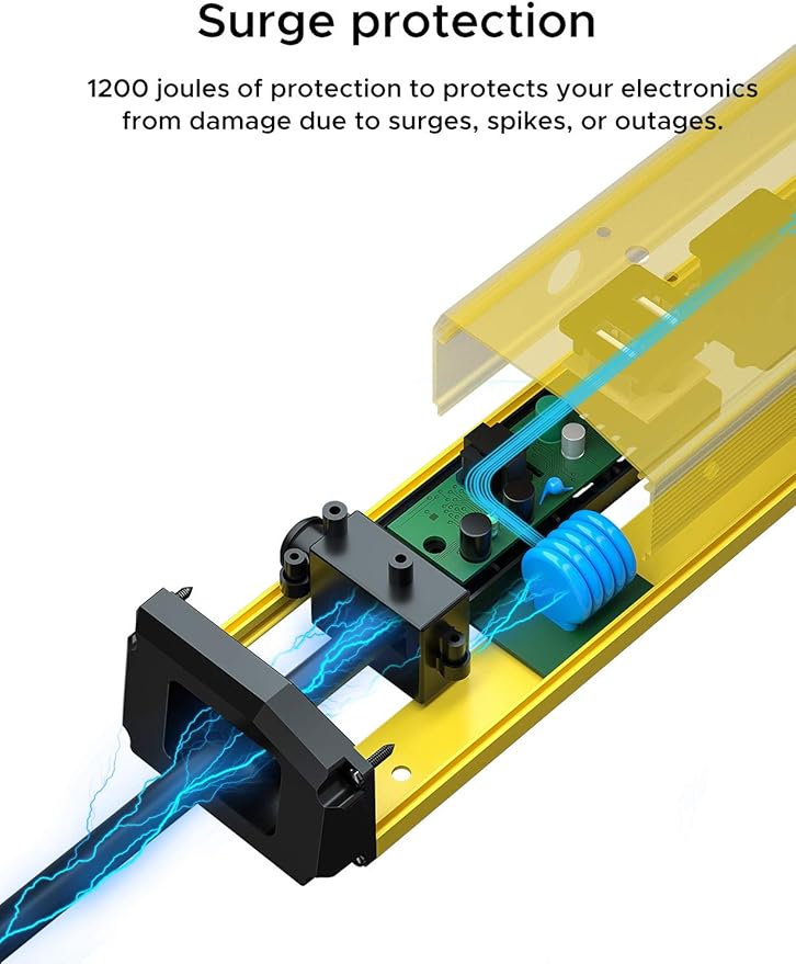 - [All-round Protection] 1200 joules of protection to protect your electronics from damage due to surges, spikes, or outages. 15 Amp circuit breaker is equipped to instantly react to catastrophic events and overloads, providing maximum protection.