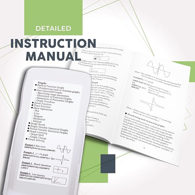 - Scientific calculator with graphic function: this is a scientific calculator that can display diagrams of formulas. It has a screen large enough to display charts and equations at the same time, so you can view calculations and corrections in detail. The size 7 x 3.3 ensures comfortable operation.