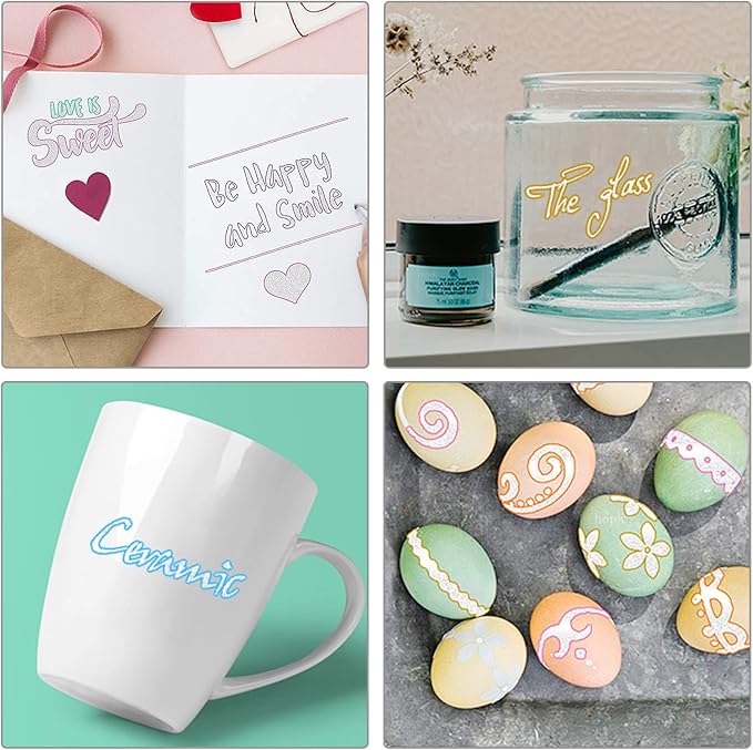 - Wide Use: Super squiggles outline markers are great for arts, crafts, school projects, coloring, stamping, Gift cards, Greeting cards, Christmas cards, DIY Craft Projects, Personality Posters, Paintings, Photo album, large metallic markers etc.