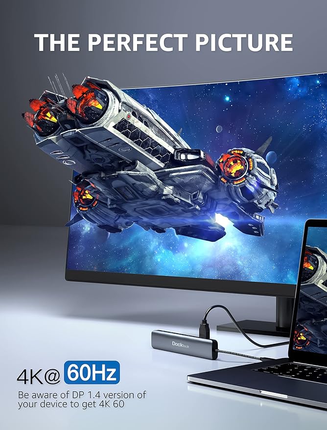 - 【Crystal Clear 4K@60Hz Media Display】 Enjoy stunning picture quality and crystal clear sound with our 4K@60Hz HDMI output port. Simply connect your USB-C enabled device to any HDMI television or monitor and experience exceptional picture sharpness and sound reproduction. Be sure to check if your device supports DP 1.4 to get 4K@60Hz