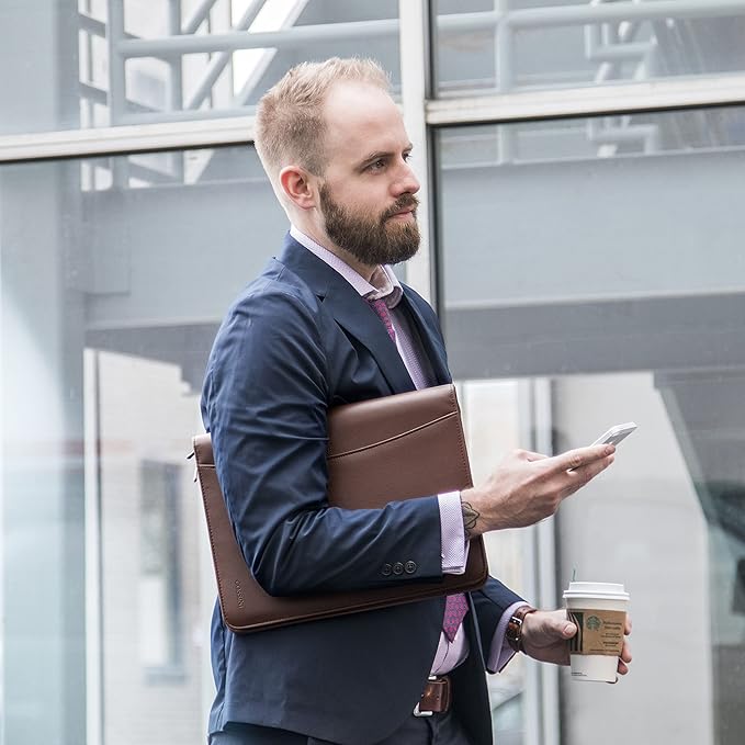 - Sleek & stunning in hand - Compact for travel: Leather folder looks gorgeous held in hand walking into the board meeting, law school, or interview while sliding neatly into handbags, backpacks while maintaining far greater storage than traditional leather planners.