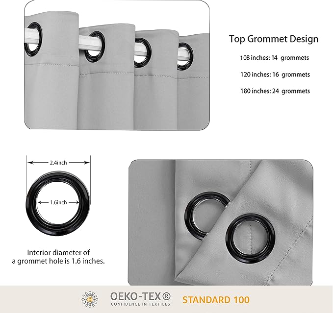 - WHAT'S IN THE PACKAGE? Each set includes 1 curtain panel, and each window drape measures 96-inch (8 ft) length by 150-inch (12.5 ft) width. 14 elegant metal grommets with 1.6-inch inner diameter, fit well with standard or decorative curtain rods, which makes the curtains easy to install and slide.