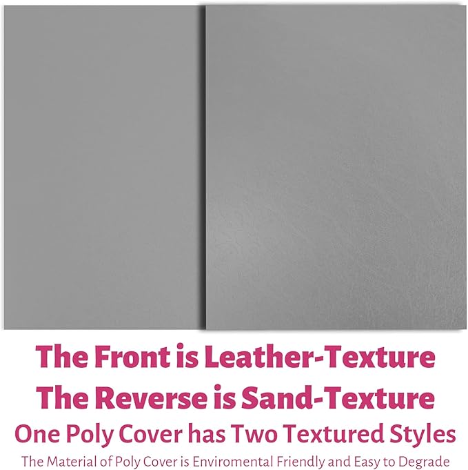 Binditek 50 Pack 16 Mil Leather Textured Polycovers - Binding Presentation Covers for Business Reports and Proposals 8-1/2 x 11 Inches, Grey Color, for Students and Coworkers