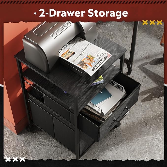 - Office Storage Solution: This filing cabinet with open storage spaces, file drawers are designed to keep the office machines, paper, files and suppliers organized. This rolling cabinet can be fixed beside or under desk. The sleek and modern finish is an easy fit for office or home study.