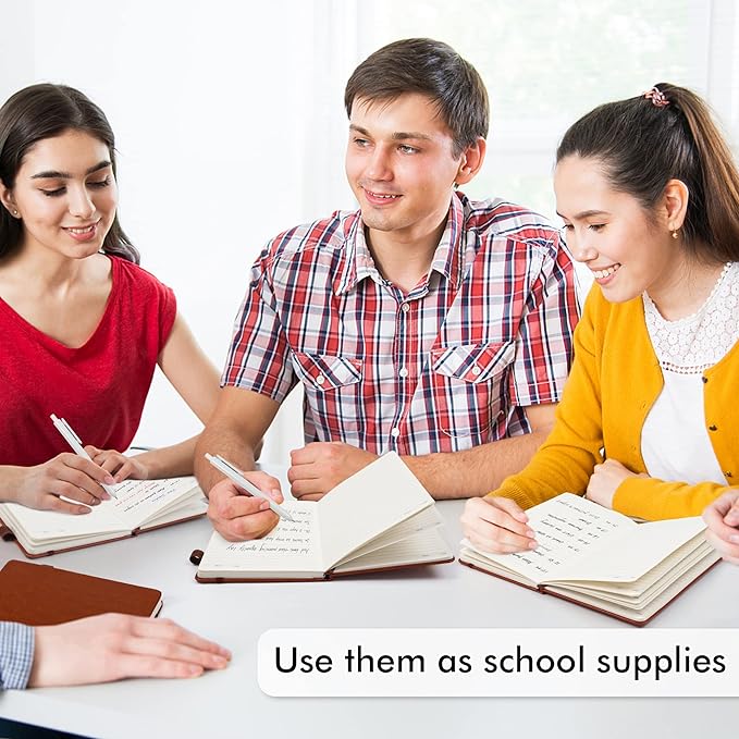 - Feela 12 Pack Classic Ruled Notebooks contains 12 classic brown ruled sturdy cover notebooks and 12 Black Retractable Pens. Each of the notebooks measures 8.3” x 5.1”, which is perfect to carry and easily held by young girls and boys. These black cute pens are customized to be placed in the pen holder, which is pretty convenient.