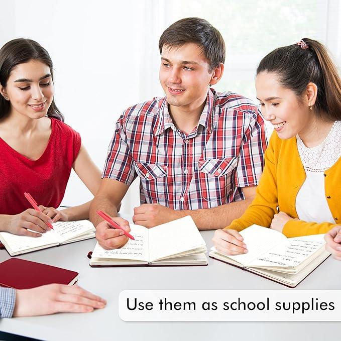 - Feela 24 Pack Classic Ruled Notebooks contains 24 classic wine ruled sturdy cover notebooks and 24 Black Retractable Pens. Each of the notebooks measures 8.3” x 5.1”, which is perfect to carry and easily held by young girls and boys. These black cute pens are customized to be placed in the pen holder, which is pretty convenient.
