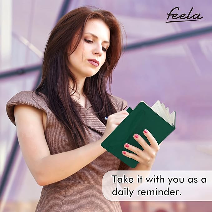 - Feela 5 Pack Classic Ruled Notebooks contains 5 classic dark green ruled sturdy cover notebooks and 5 Black Retractable Pens. Each of the notebooks measures 8.3” x 5.1”, which is perfect to carry and easily held by young girls and boys. These black cute pens are customized to be placed in the pen holder, which is pretty convenient.
