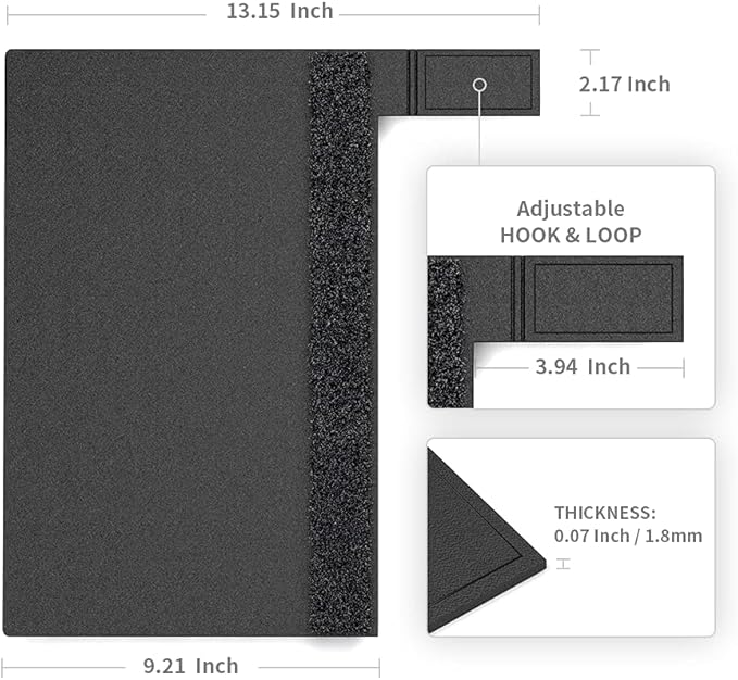 - Dimension: Two 13.14"L x 9.21"W cover with Adjustable 3.93"L x 2.16"W Hook&Loop, allows to adjust according to the thickness of the book spine. Used Only for A4 and smaller than A4 sized books