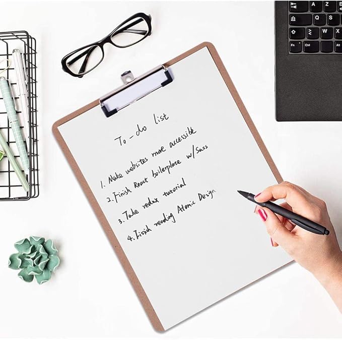 - Eco-Friendly Wood Clipboard : Made from 100% recycled wood fibers, lightweight and sturdy. Finished on both sides with smooth, rounded edges.