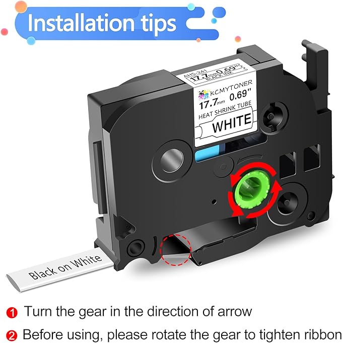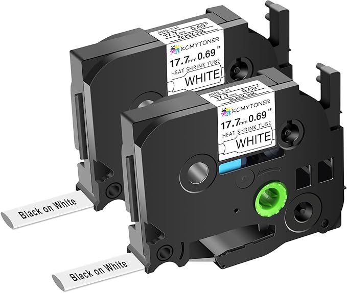 - Package Included: 2 pack KCMYTONER compatible for ptouch HSe-241 HS-241 HSe241 HS241 heat shrink tube label tapes; color: black text on white tape; size: 3/4 inch (17.7mm, flattened width) x 4.92 feet (1.5m).The size indication for this heat-shrink tube label is the width of the flattened tube as a label in a label printer. Do be aware that the size given relates to the label making machine, not the wire. HSe-241 17.7mm tube suits cables ranging from Φ5.4mm to Φ10.6mm in diameter.