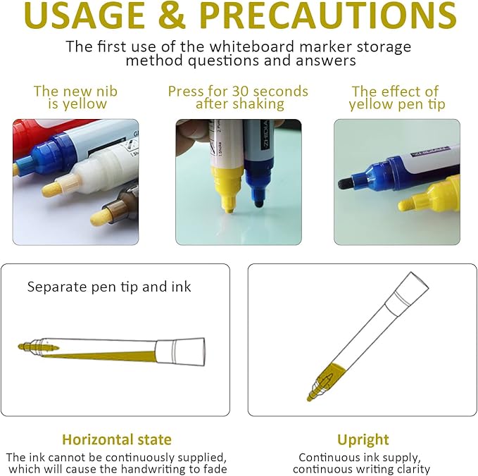 - 【BOLD COLOR】– Premium bright yellow glass dry-erase markers are optimized for use on non-porous surfaces, such as black glass boards/acrylic board. Delivers strong bold color every time, to ensure that your message is distinct and legible. Note: Doesn't include replacement marker tip.