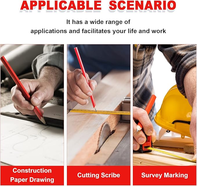 - Multipurpose: wood carpenters pencil can withstand the pressure of marking on hard, rough, and uneven surface materials, such as wood, plywood, cardboard, unprocessed wood, wood, paper, concrete, bricks, and so on