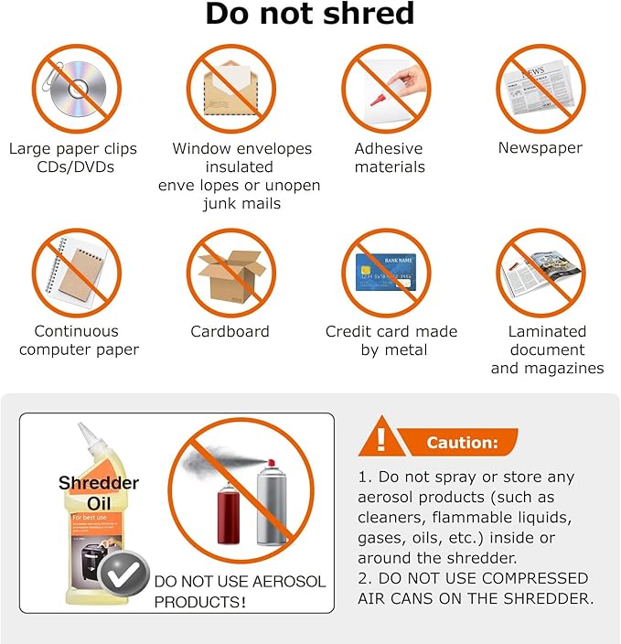 - 【Easy Operation & Safe Protection】Auto start/stop and manual-forward/reverse function protect the paper shredder heavy duty from the frustration of paper jams. Overheat protection helps you use paper shredder without worrying and prolong its lifetime. The document shredder will stop working once lift the head, keeping you safe.Important Note: We test every shredder before shipping, which means you may see some paper shreds from the testing.