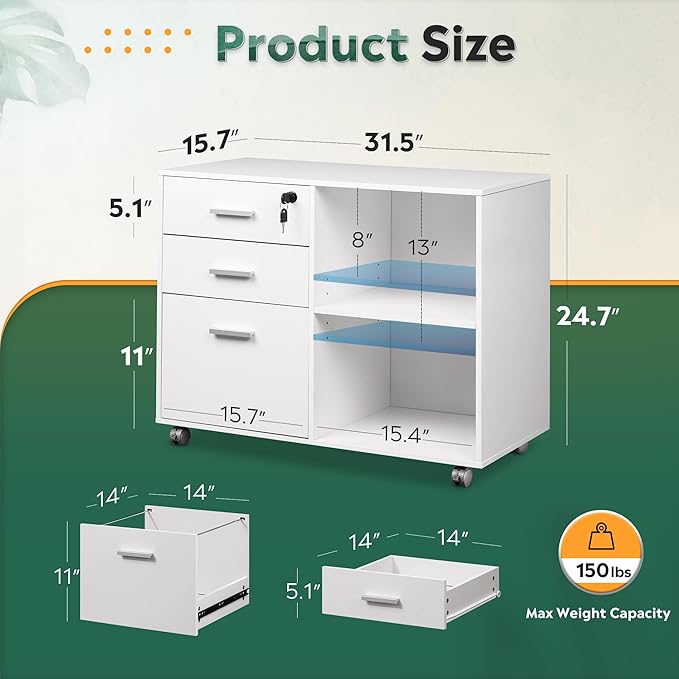 - Multifunctional File Cabinet with Lock: This file cabinet features open storage spaces, file drawers, and storage cabinets, allowing you to organize office equipment, papers, files, and supplies neatly. It keeps your personal belongings secure.