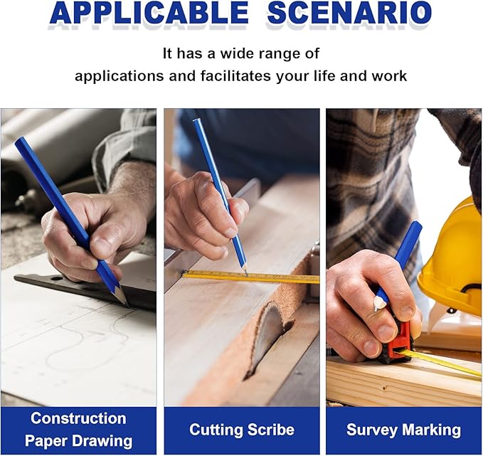 - Multipurpose: wood carpenters pencil can withstand the pressure of marking on hard, rough, and uneven surface materials, such as wood, plywood, cardboard, unprocessed wood, wood, paper, concrete, bricks, and so on