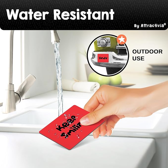 - Strong Magnetic Hold: Our dry erase magnets feature a powerful 0.02 inch thick magnetic back for instant and secure adhesion to any metallic surface, whether flat or slightly curved. Easily attach our dry erase stickers labels and remove without residue, ensuring a firm grip even on rounded surfaces.