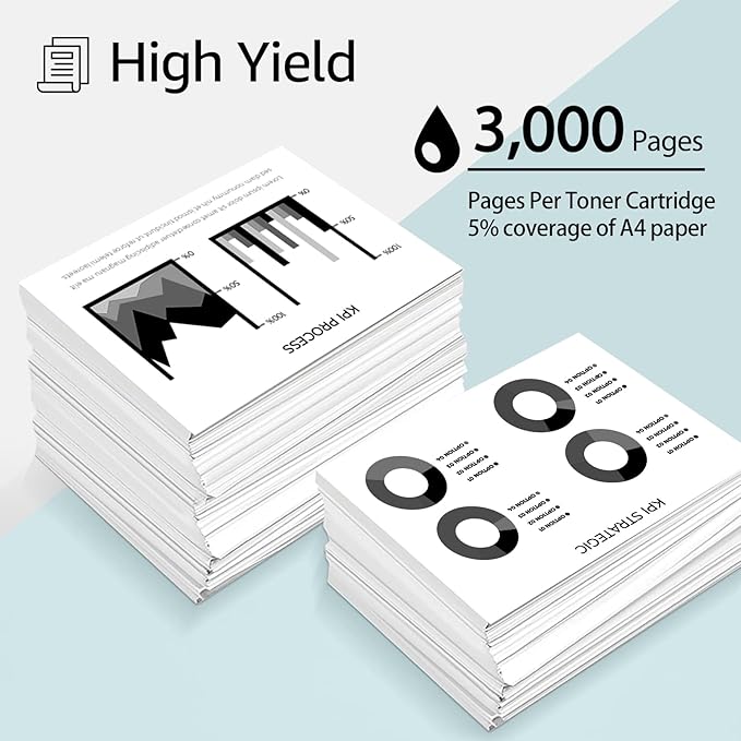 - Page Yield: Up to 3,000 pages per W1105A black toner cartridge (based on 5% coverage of Letter size Paper). Actual toner yield varies with usage, graphics printed and environmental conditions.
