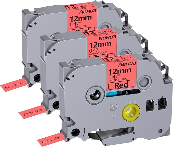 Hehua Tape Tze Tz 12mm 0.47 Laminated Red Compatible for Brother P-Touch TZe-431 TZe431 TZ-431 TZ431 Tape for Ptouch PT D210 D200 D220 D610 H110, 1/2'' x 26.2ft Black on Red, 3 Pack