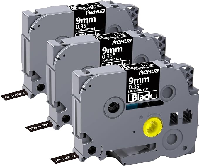 Hehua Tze Tz Tape 9mm 0.35 Laminated Black Tape Compatible for Brother P-Touch TZe-325 TZe325 TZ-325 TZ325 Label Tape for Ptouch PT D210 D200 D220 H110, 3/8'' x 26.2ft White on Black, 3 Pack